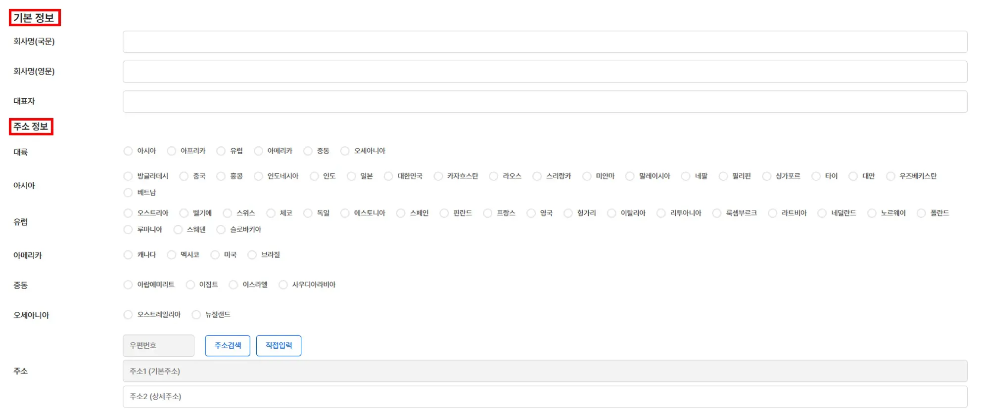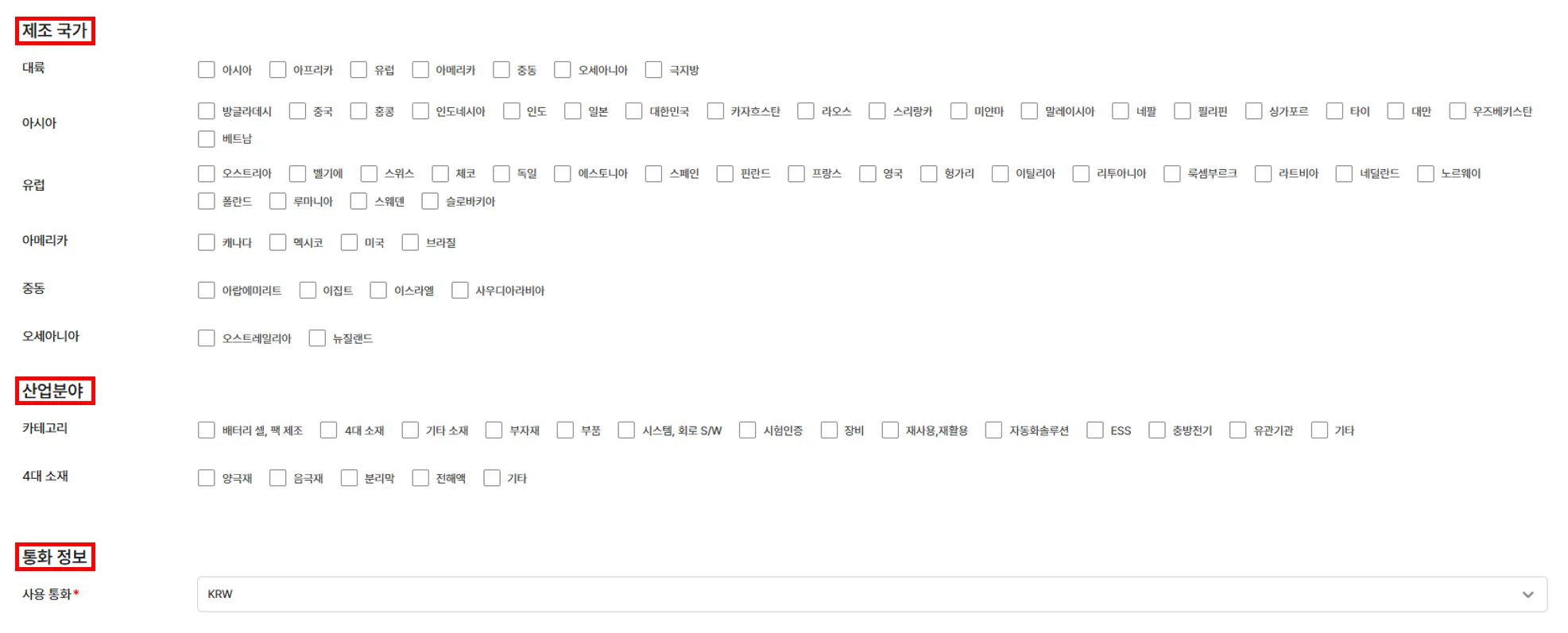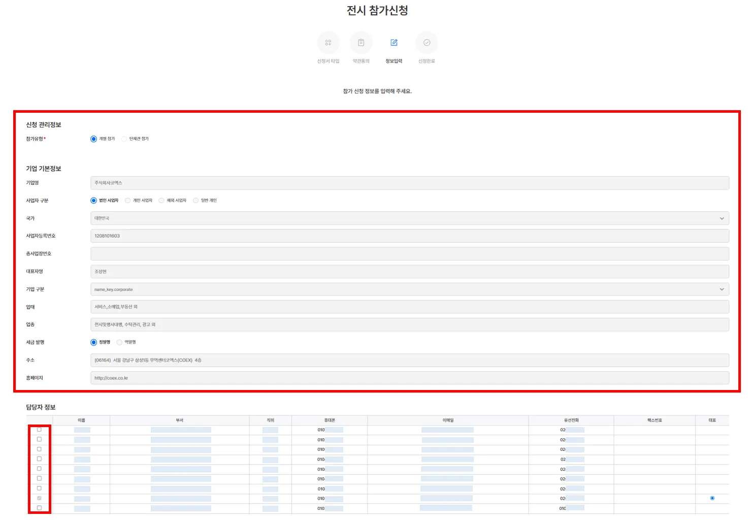 [세금계산서 담당자 정보], [홀 및 참가유형], [부스 배정 여부], [스폰서 기업] 선택