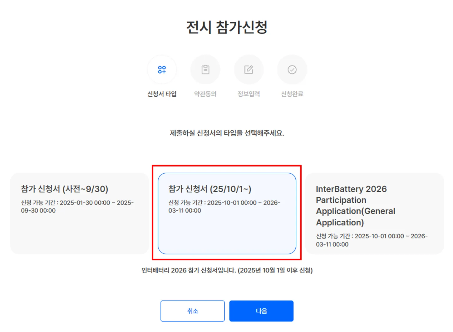 [참가 신청서 (25/10/1~)] 선택 후 [다음] 클릭
