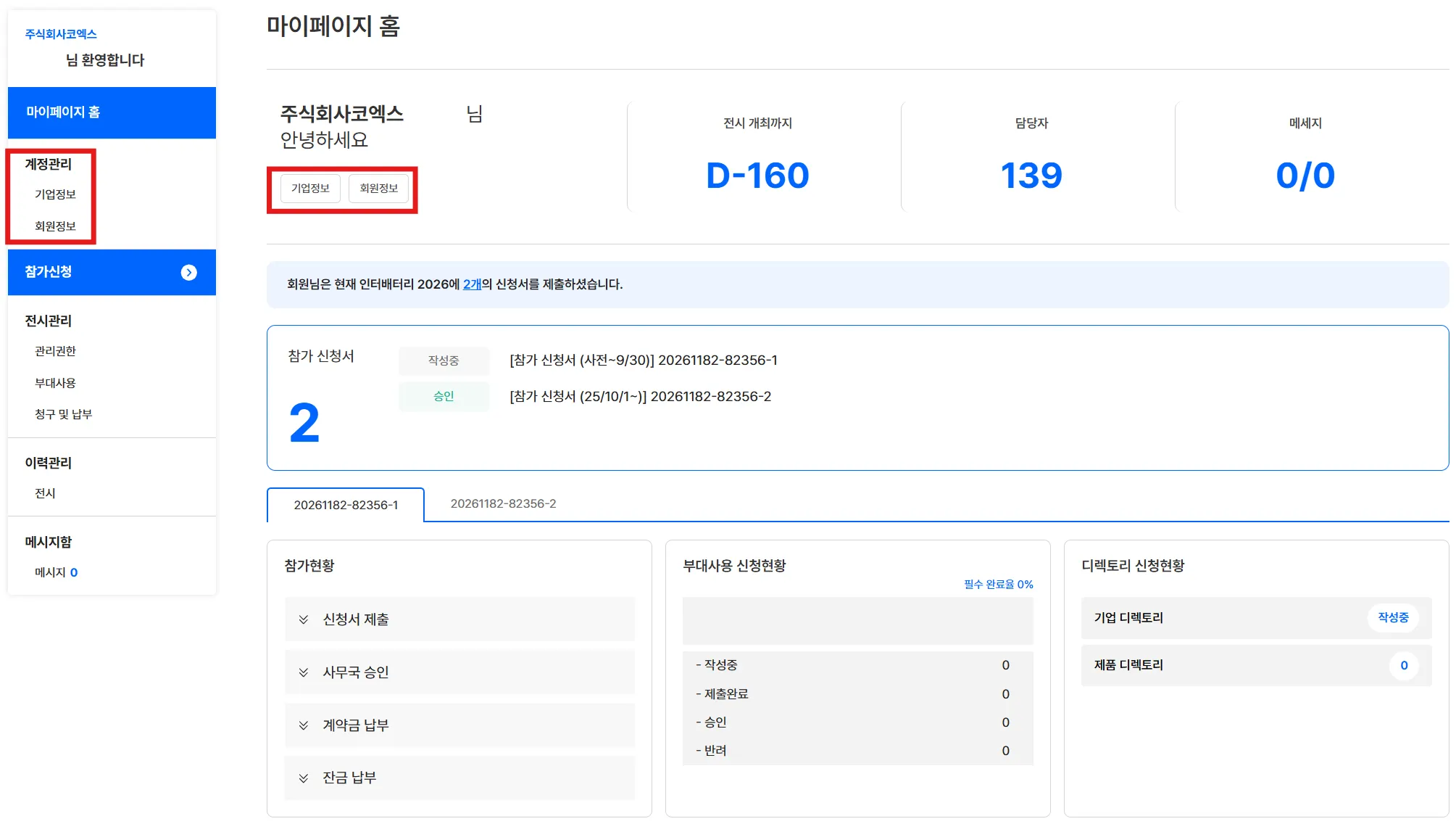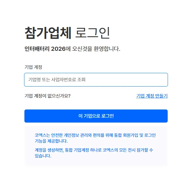 (2) 코엑스 전시회 참가 이력이 없는 경우: 기업 계정 만들기