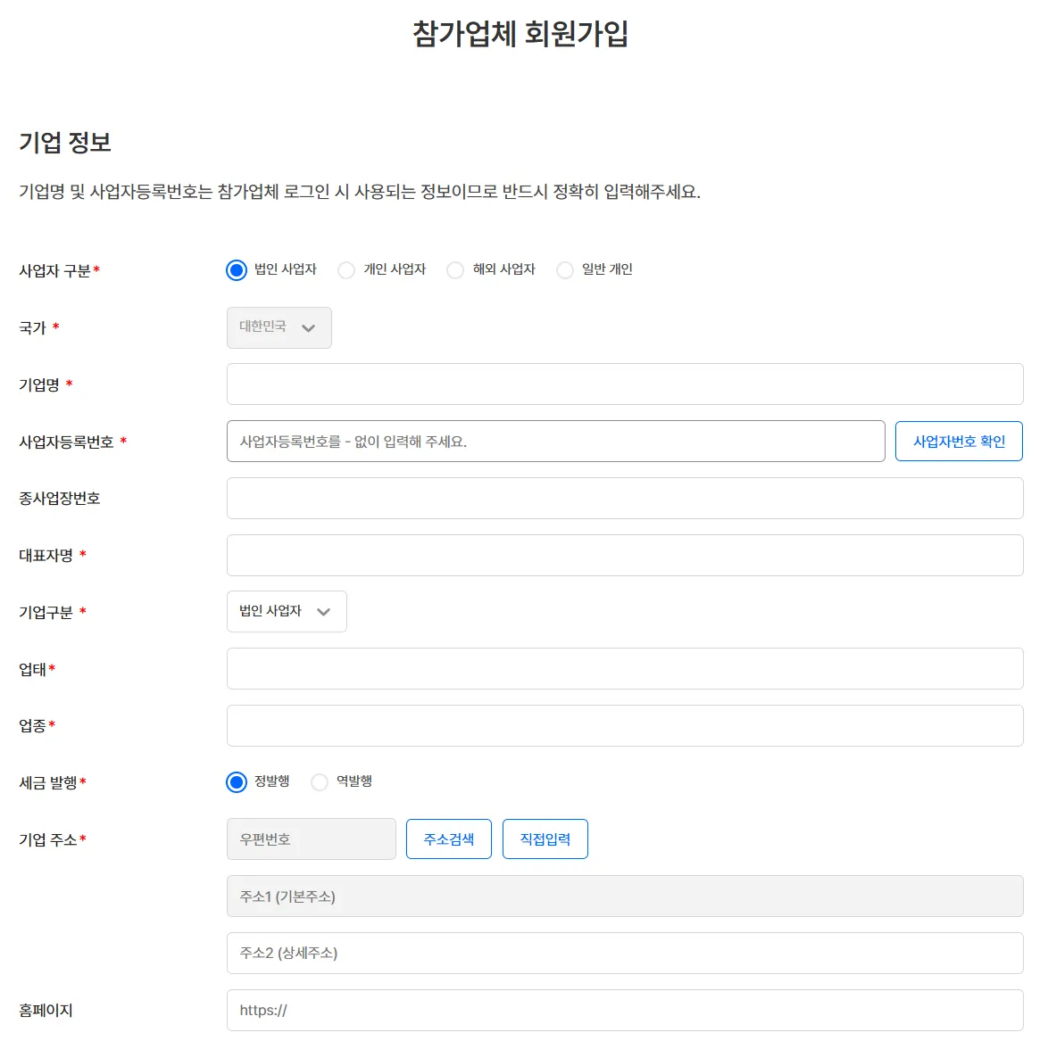 해당 기업 정보는 추후 비즈니스 매칭 등에 반영이 되는 정보로 상세한 작성 부탁드립니다.