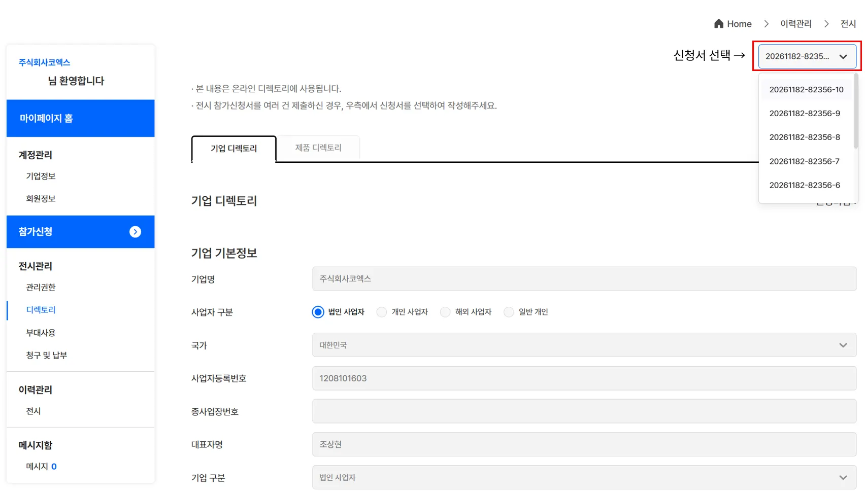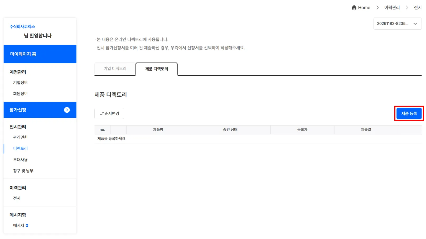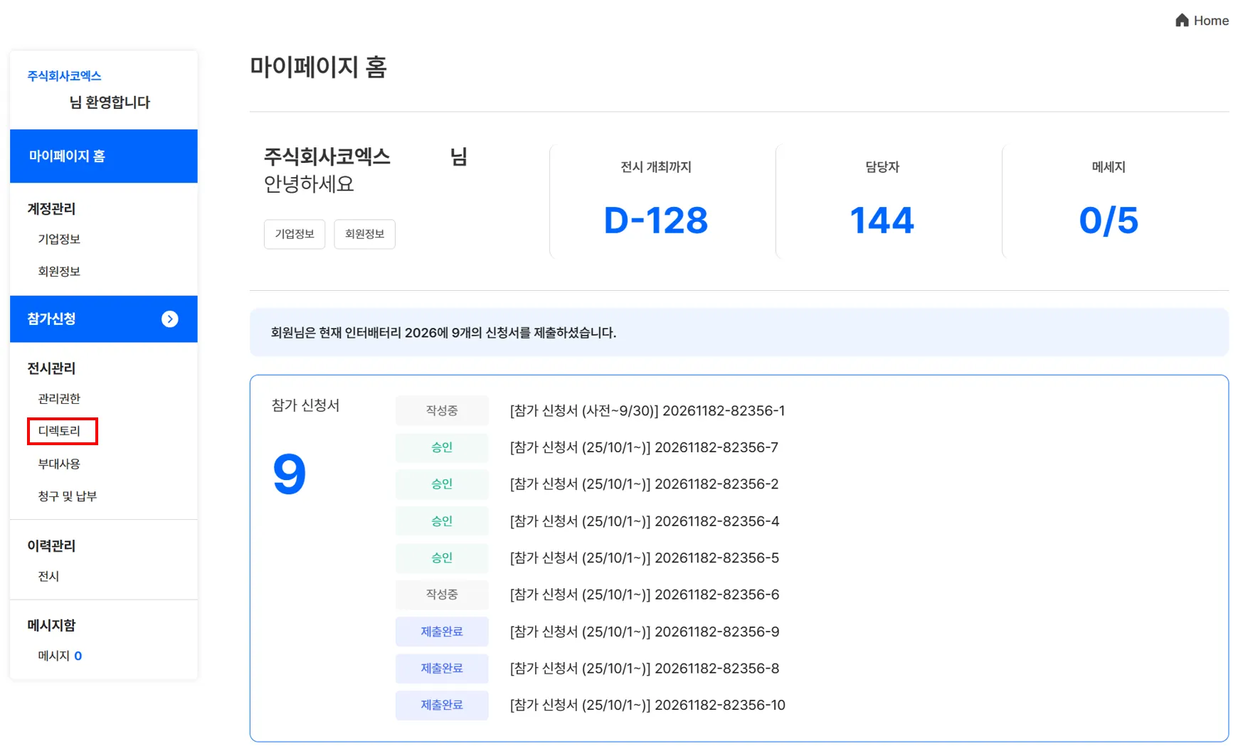 좌측 카테고리에서 [전시관리] > [디렉토리] 클릭